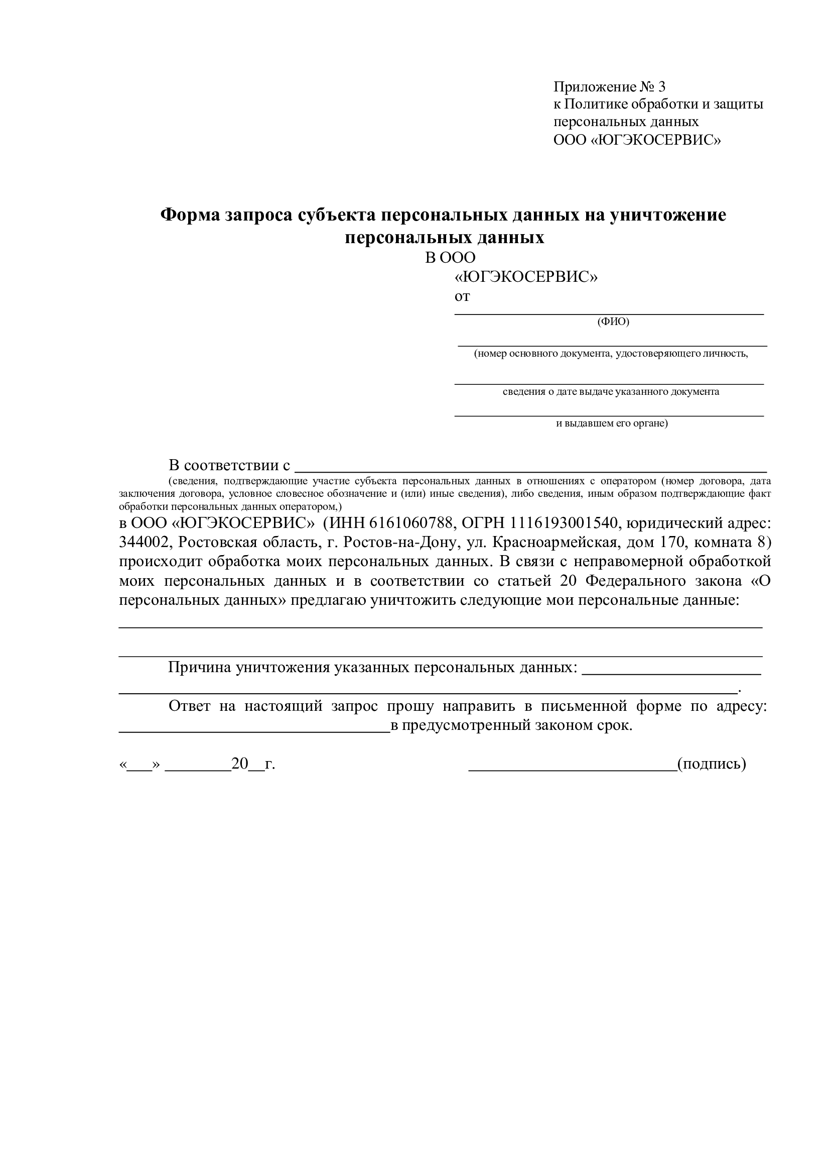 1.4.2. Субъект персональных данных вправе требовать от Общества, осуществляющего обработку его персональных данных, их уточнения, блокирования или уничтожения в случаях, когда такие данные являются неполными, устаревшими, недостоверными, полученными с нарушением законодательства либо не соответствующими заявленным целям обработки, а также может принимать законные меры для защиты своих прав.